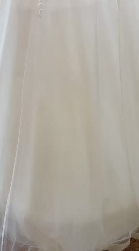 Full tulle skirt with cascading lace and a wavy horsehair edge to the hem